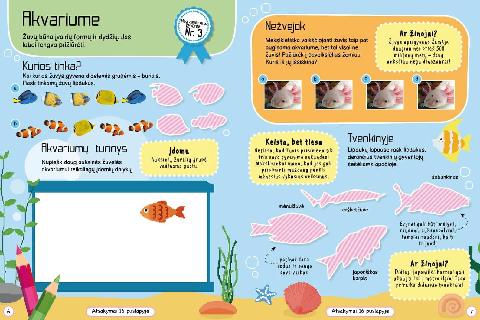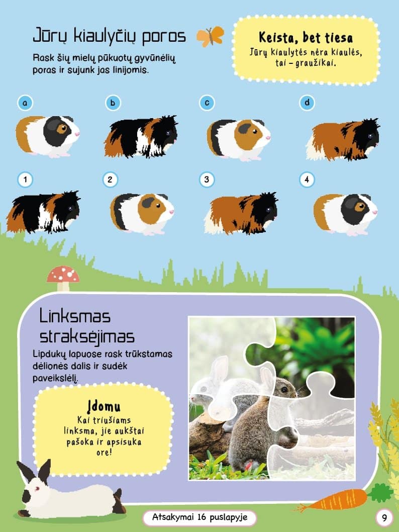 Atlik šios nuostabios knygelės užduotis ir sužinok viską apie mėgstamiausius augintinius. Mažieji gyvūnėlių mylėtojai smagiai leis laiką dėliodami dėliones, sužinos įdomių faktų ir priklijuos daugiau nei 300 lipdukų.