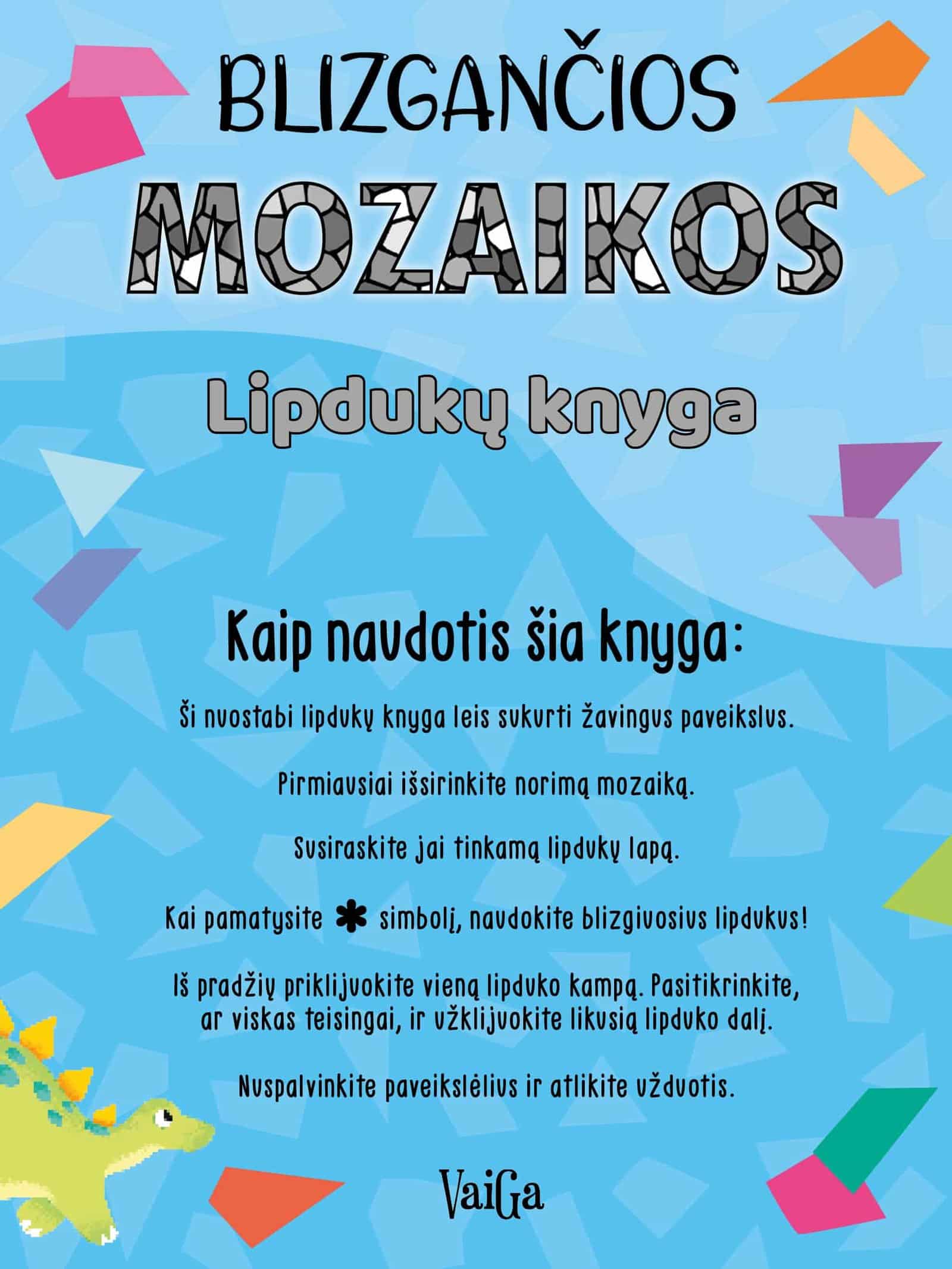 Ši nepaprasta mozaikų ir lipdukų knyga pakels jūsų kūrybiškumą į naujas aukštumas. Čia rasite šimtus lipdukų (taip pat ir blizgančių!), užduotis, spalvinimo paveikslėlius ir patys kursite nuostabius meno kūrinius.