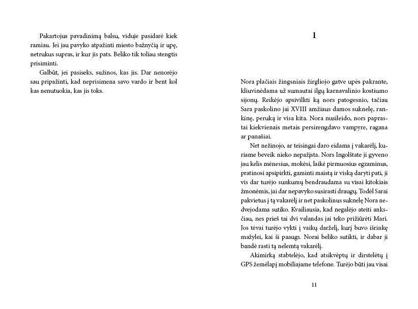 Naktis, karnavalas ir jo kvaituly paskendęs miestas. Viename jo krašte studentė Nora puošiasi šventei, kitame – apleistame name nusėtas randų ir praradęs atmintį pabunda Maksas. Juodu suveda karnavalo šurmulys. Tik Makso drabužiai – visai ne kostiumas. Norai smalsu, tad ji leidžiasi paskui Maksą ir patenka į… laiko spąstus. Kaip šiuolaikinei XXI amžiaus merginai išgyventi tarp XVIII amžiaus draudimų ir suvaržymų?