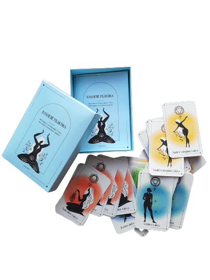 Dėžutėje rasite mini knygutę su paaiškinimu ir instruktažu bei 63 kortas – po 9 kortas su afirmacijomis kiekvienai iš 7 čakrų bei tai čakrai rekomenduojamais eteriniais aliejais. Knygelėje taip pat rasite sudėtą informaciją, kas yra čakros žvelgiant šiuolaikinio vakariečio akimis, instrukciją kaip atlikti savidiagnostiką 3 skirtingais būdais bei kasdienę praktiką. Sužinosite vienintelę svarbiausią sąlygą ko reikia, kad ištraukta korta tikrai būtų prasminga ir kad jos veiktų.