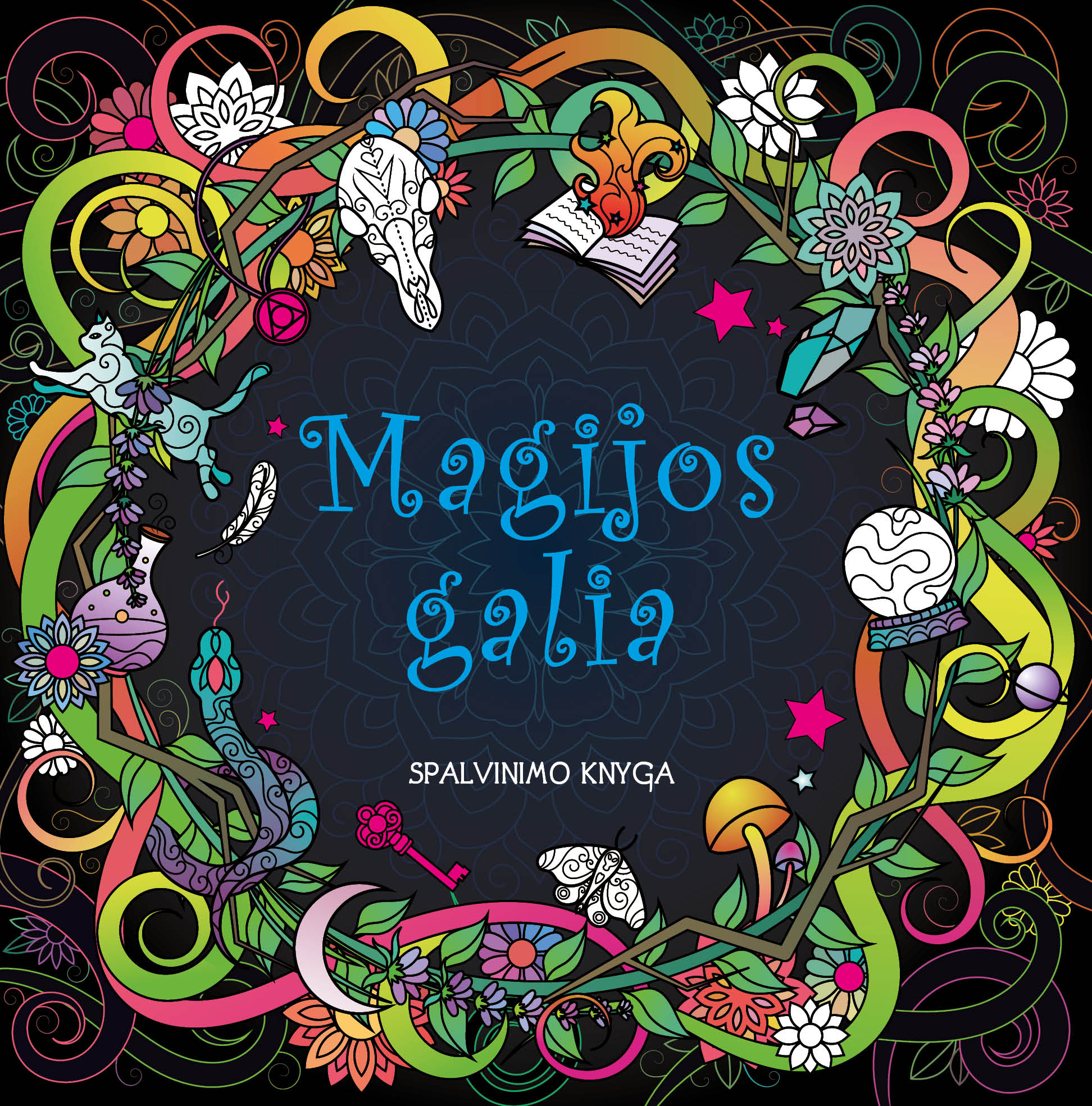 Ši magiškų piešinių kupina spalvinimo knyga jums atvers kerinčio mistikos ir burtų pasaulio duris.