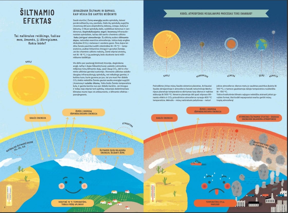 Knygoje „Na ir karštis! Koks bus ateities klimatas? Ir kaip galime sumažinti žalą aplinkai?“ gausu piešinių, tad ją nesunkiai supras jau pradinukai, o vyresniems tai bus puikus vaizdingas sudėtingų procesų paaiškinimas.