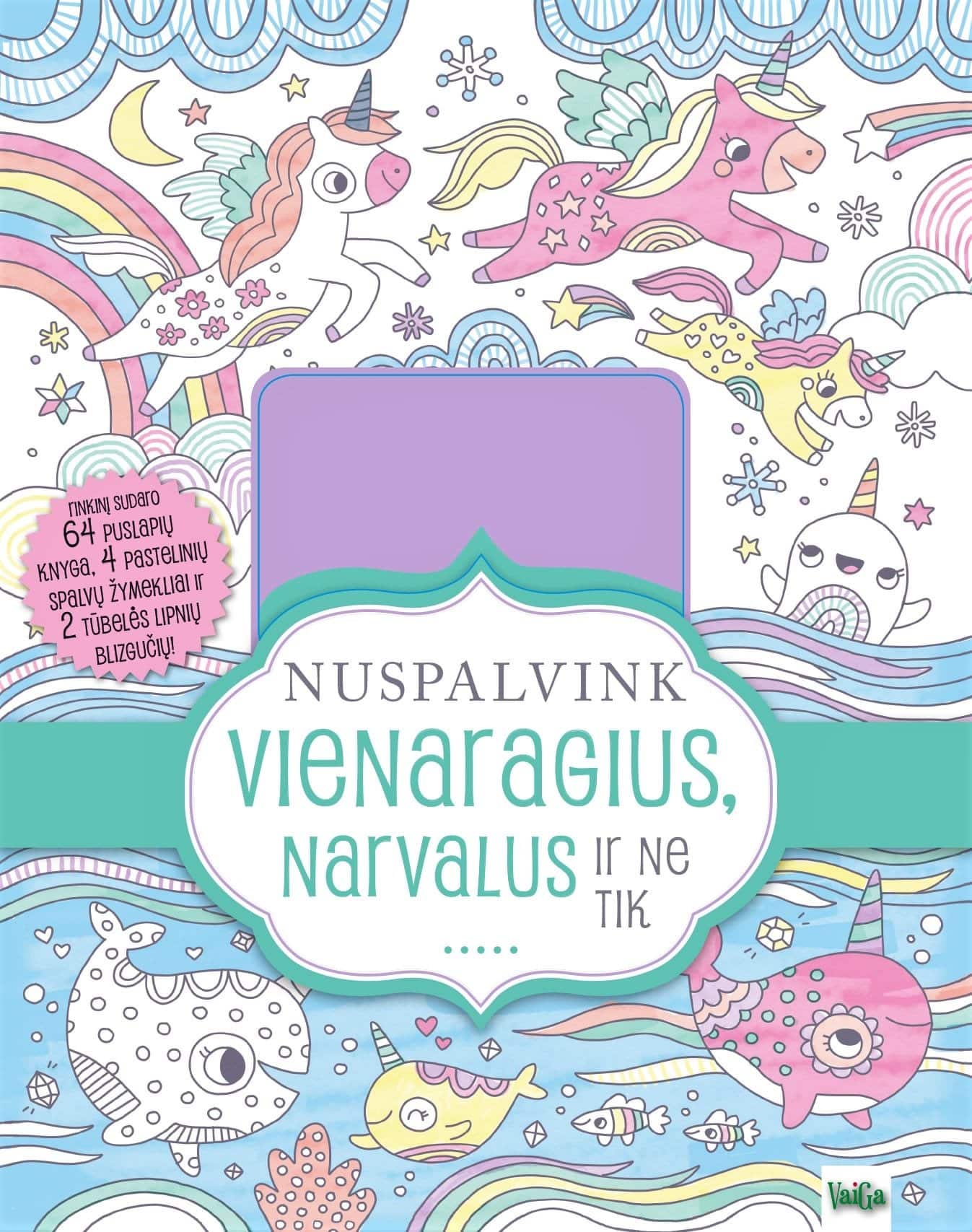 Tegul pildosi jūsų magiškos fantazijos! Rinkinyje esančiais pastelinių spalvų žymekliais ir lipniais blizgučiais išmarginkite vienaragių, narvalų ir kitų gyvūnų pasaulį gražiausiomis spalvomis. Praskaidrinkite savo dieną – spalvinkite, kiek širdis geidžia.