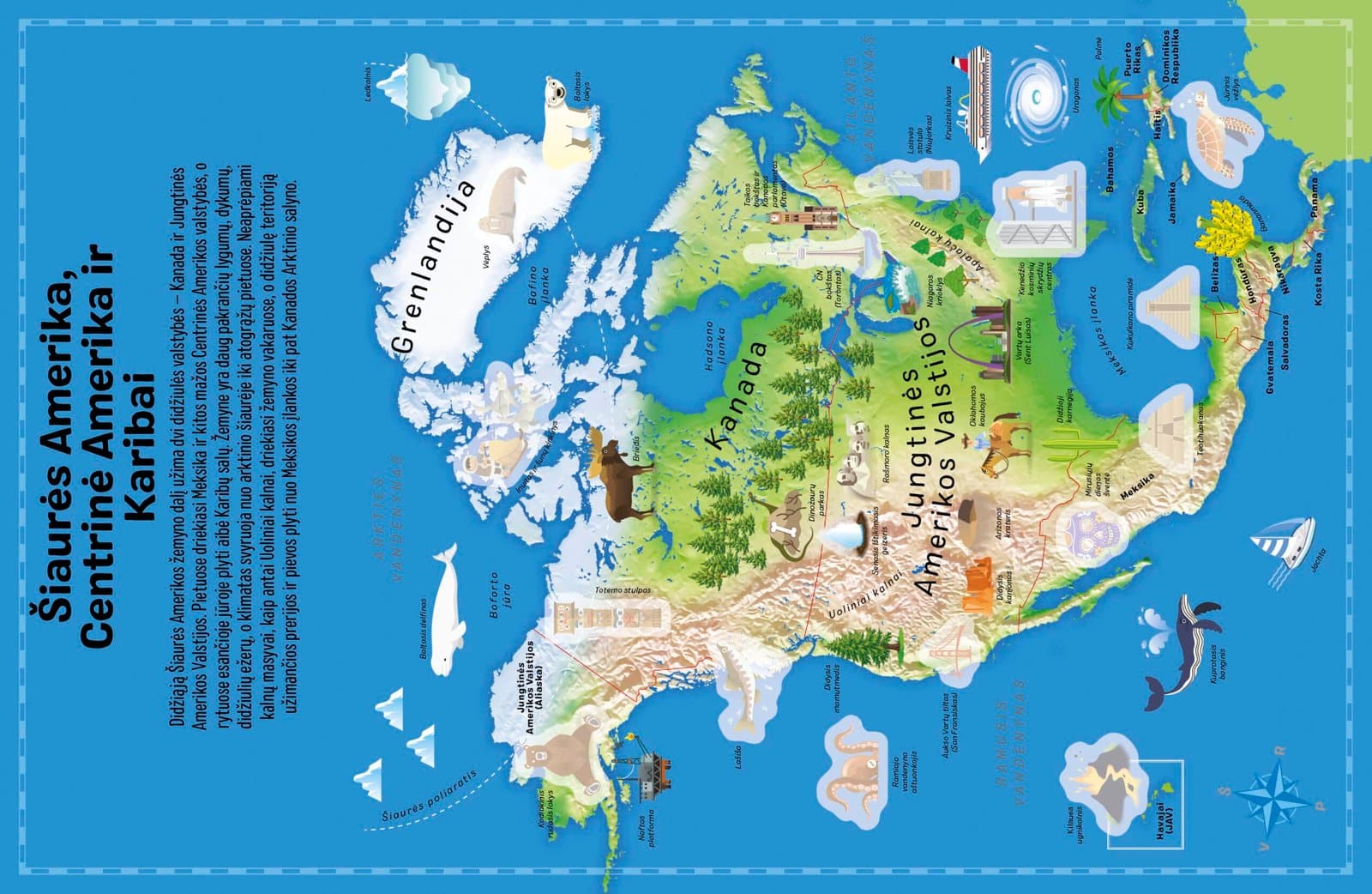 • išskirtinių kiekvieno regiono įdomybių puslapius su papildoma informacija apie garsius statinius, paminklus, gyvūnus, neįtikėtinus gamtos reiškinius ir kultūros renginius;