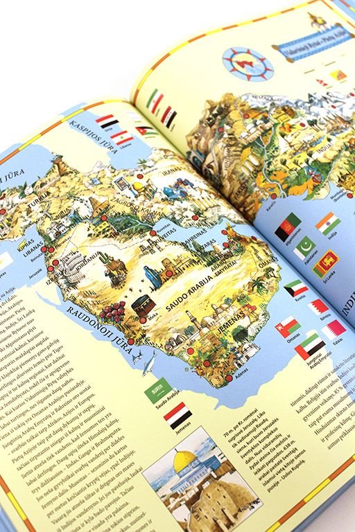 Šioje knygoje jaunieji skaitytojai ras daugiau nei 15 spalvotų žemėlapių, kurie lydės juos kelionėje aplink visą Žemės rutulį.