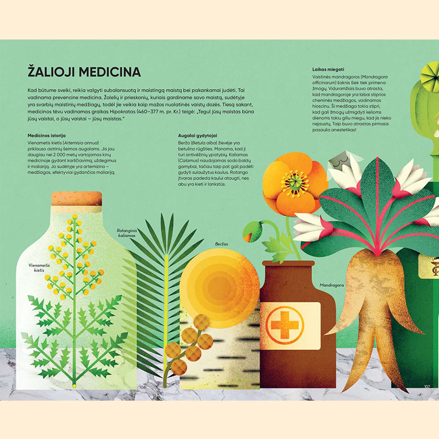 Ir kas sakė, kad pažinimas gali būti nuobodus? Skaitydami šią spalvingą, įtraukiančią pažintinę knygą pasijusite tarsi braidytumėt po augalų pieva. Knygoje rasite įdomių, keistų ir net juokingų faktų apie mūsų žaliuosius kaimynus, sužinosite tai, ko net neįtarėte apie augalus bei daiktus, kuriuos kasdien vartojate. Ar žinojai, kad tavo batų guma pagaminta iš medžio? Ar kada susimąstei iš kur atsiranda sausi pusryčiai ant tavo stalo? Ir ar nepamiršai padėkoti bitei už gardžią vakarienę?