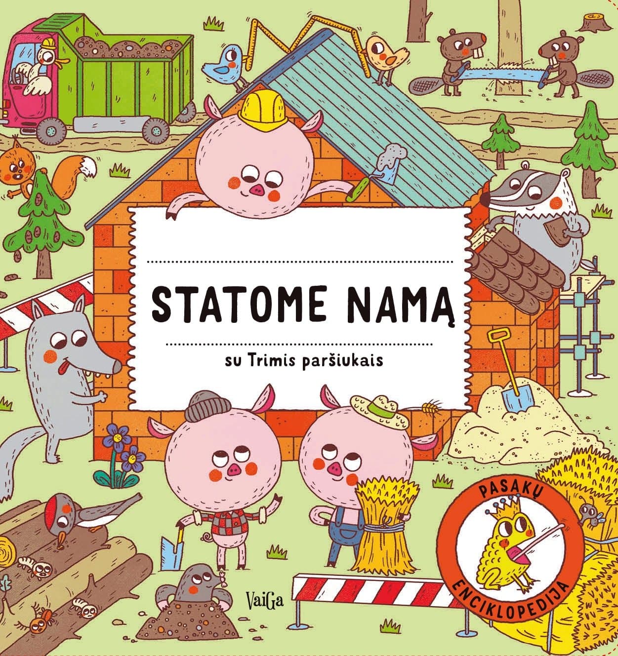 Trys paršiukai nori pasistatyti namą. Nuo ko pradėti? Apsivilk kombinezoną ir eime apžiūrėti įrengimų, kurių prireiks paršiukams: krano, žemkasės, kirtiklio, sunkvežimio, plytų, mentelės ir daugybės kitų. Kas jiems padeda? Ir kokį radinį paršiukai iškapstė iš žemės? Perskaityk ir sužinosi!
