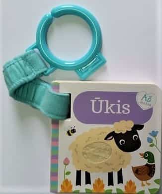 Mažučio formato smagi knygelė patiems mažiausiems skaitytojams! Ryškiaspalvis dirželis ir patogus žiedas leis šį žaislą-knygelę pritvirtinti prie vaikiško vežimėlio ar lovelės. Kieti kartoniniai lapai patogūs vartyti mažoms rankelėms, o viduje esantys paveikslėliai ir žodžiai pagelbės pažindinant mažuosius su ūkio gyvūnais. Galėsite kartu paglostyti avelės ant viršelio kailiuką ir smagiai leisti laiką mokydami mažylį ištarti ūkyje auginamų gyvūnėlių pavadinimus.