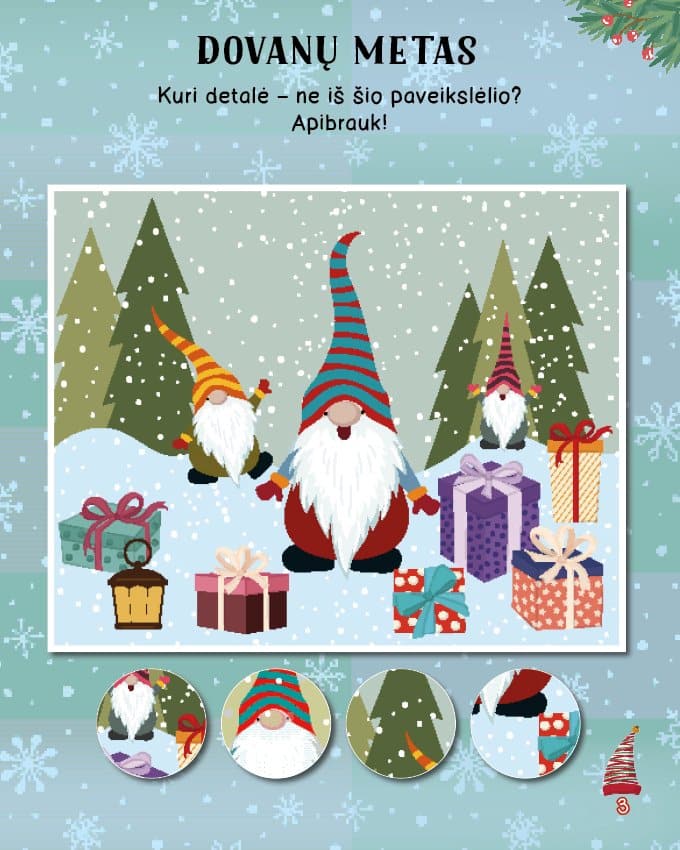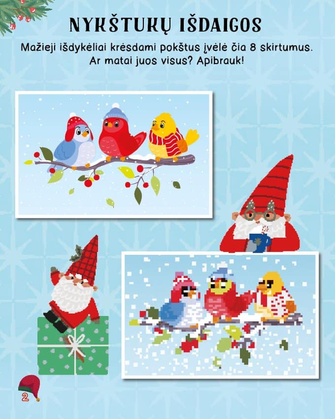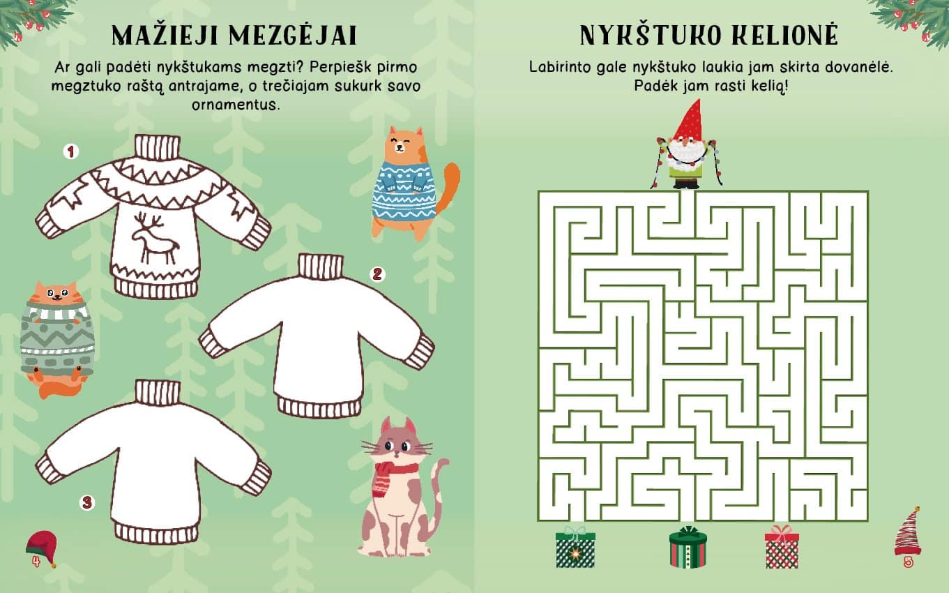Spręsk painius galvosūkius, atlik nuotaikingas užduotis, nuspalvink žiemiškus paveikslėlius ir papuošk juos blizgančiais lipdukais. Jų yra tiek daug, kad užteks ir kitiems tavo piešiniams bei darbeliams.